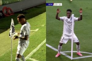 欧冠1/8决赛附加赛,皇马两回合3-1双杀本菲卡,维尼修斯两回合各入一球,两次都在角旗杆旁跳舞庆祝。