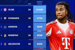 1、 奥利塞(拜仁)24岁 1.4亿欧