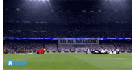 体育资讯02月26日讯 欧冠1/8决赛附加赛次回合,皇家马德里主场迎战本菲卡,赛前,皇马球迷在伯纳乌拉起横幅,反对种族歧视。