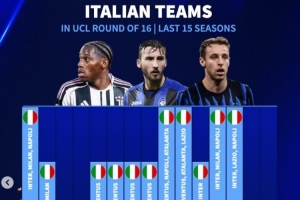 德转列近年欧冠16强意甲球队数:连续2年仅1队,此前5年共计14队