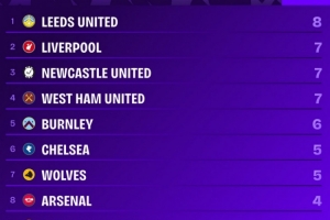 Squawka统计了本赛季各队英超比赛90分钟或以后的丢球数量,并列出榜单,利兹联8球最多,利物浦7球并列次席。